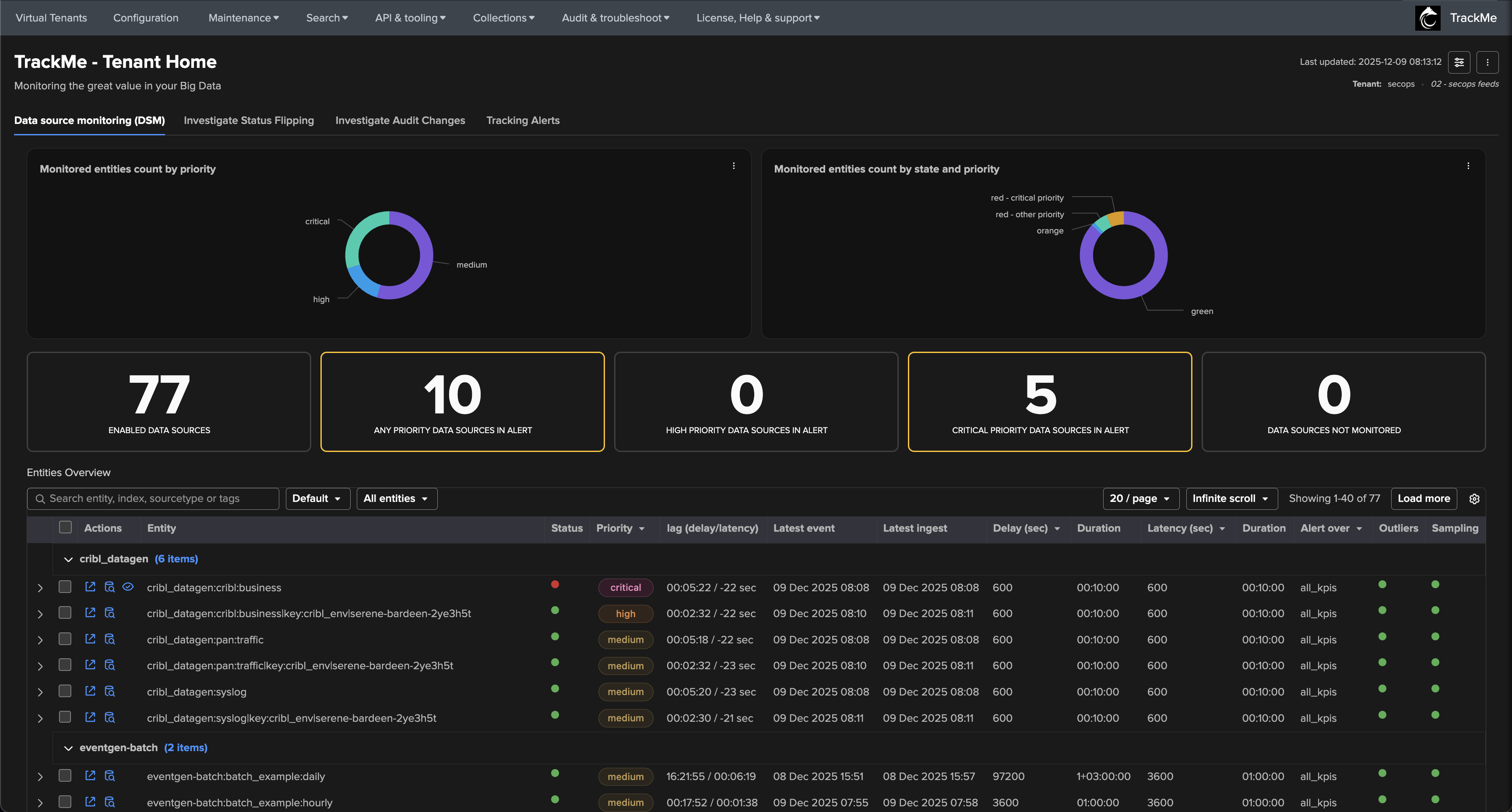 TrackMe for Splunk is the ideal companion for your Splunk deployment, no matter the size of your environment. Its unique capabilities help you on a daily basis to get the best value from your Splunk investments: