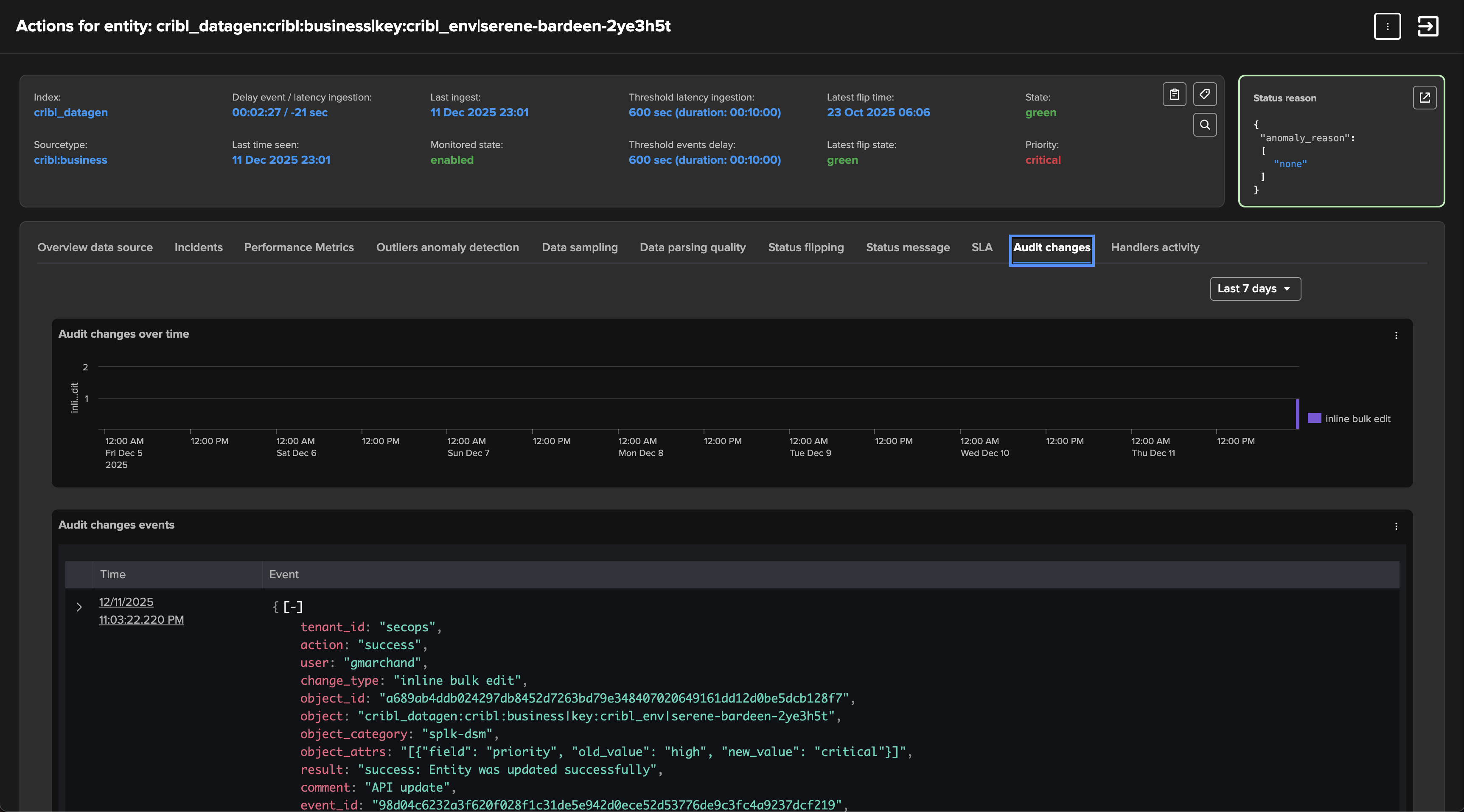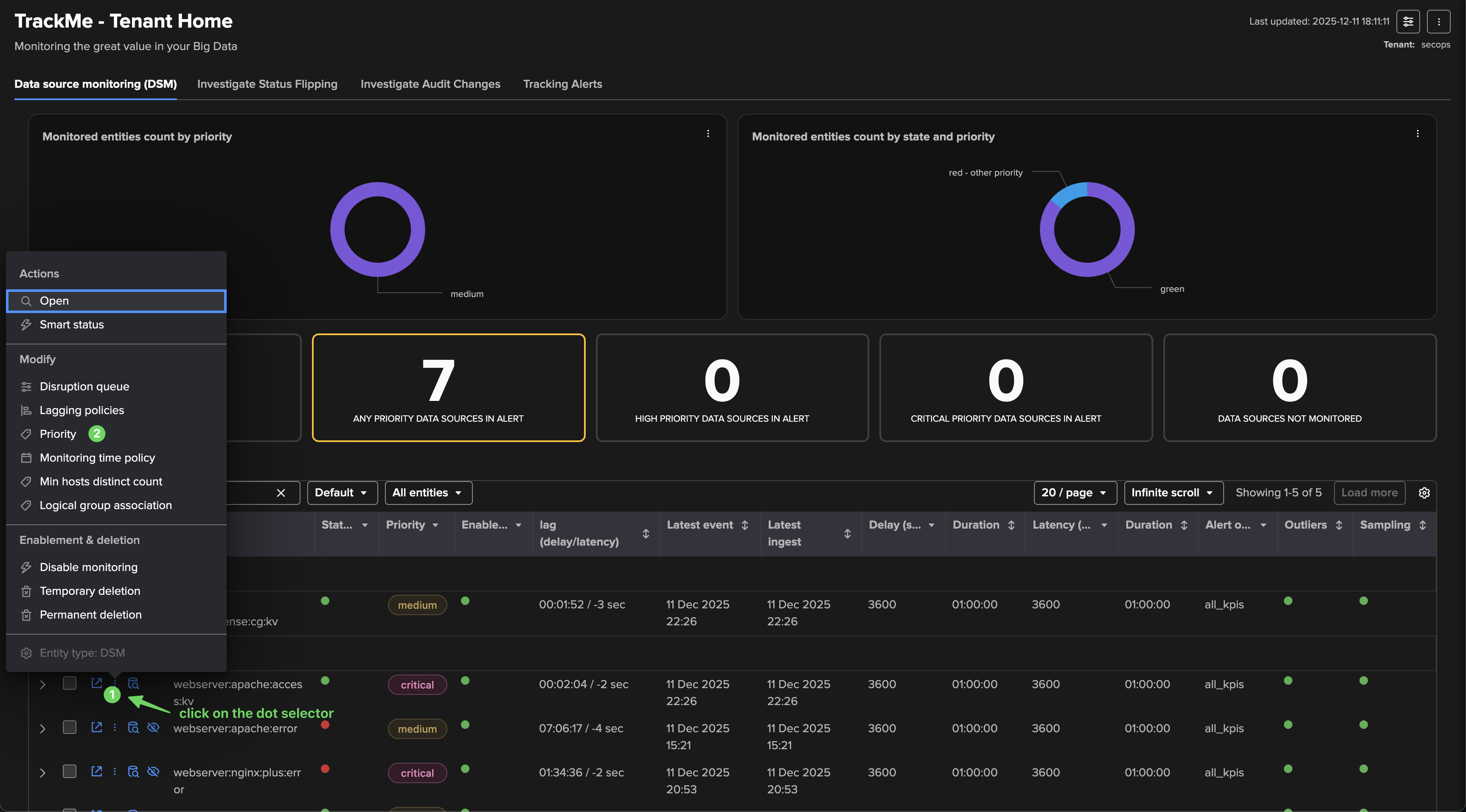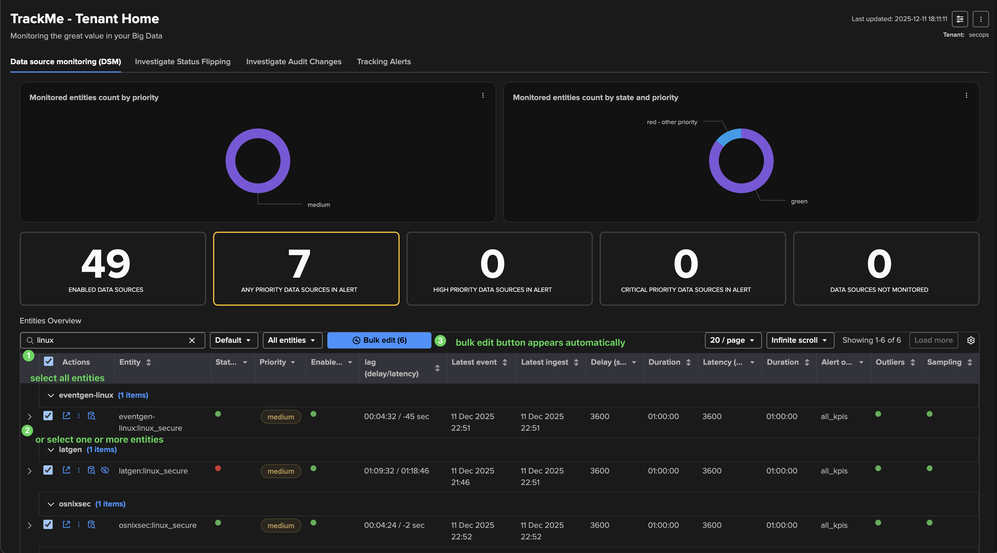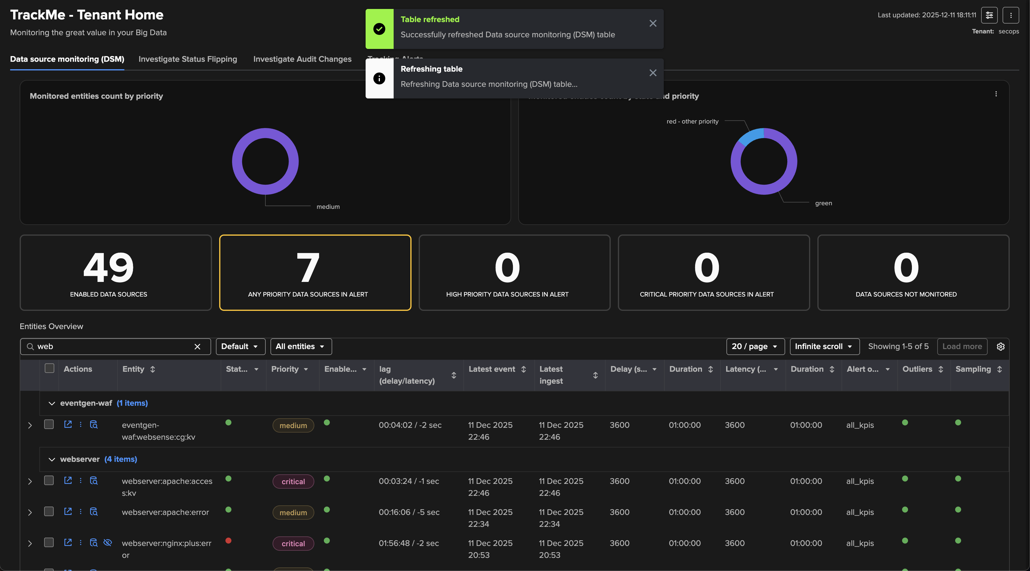 Leverage priority: Use TrackMe’s entities priority feature to distinguish valuable entities from those that are less important. For instance, tagging entities that you have reviewed and qualified as “high” or “critical” can help you focus on the most critical components in your environment.