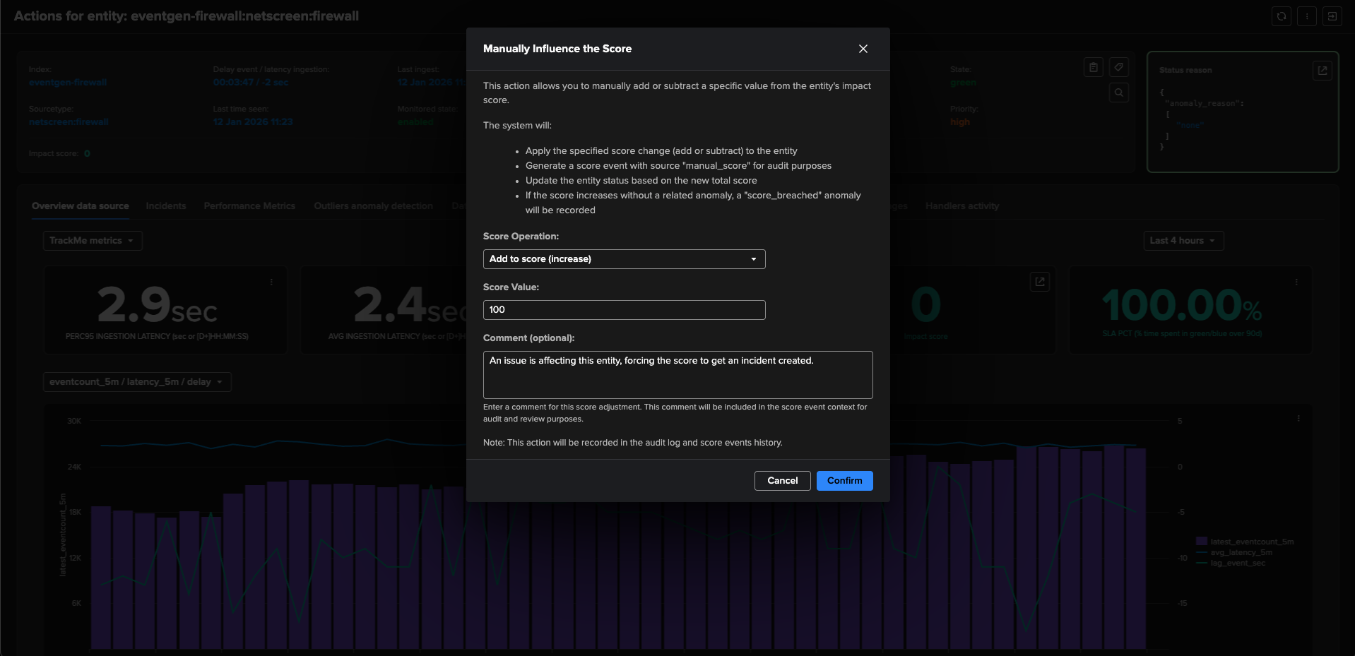 Testing: Use manual score influence to test alerting thresholds before making permanent changes
