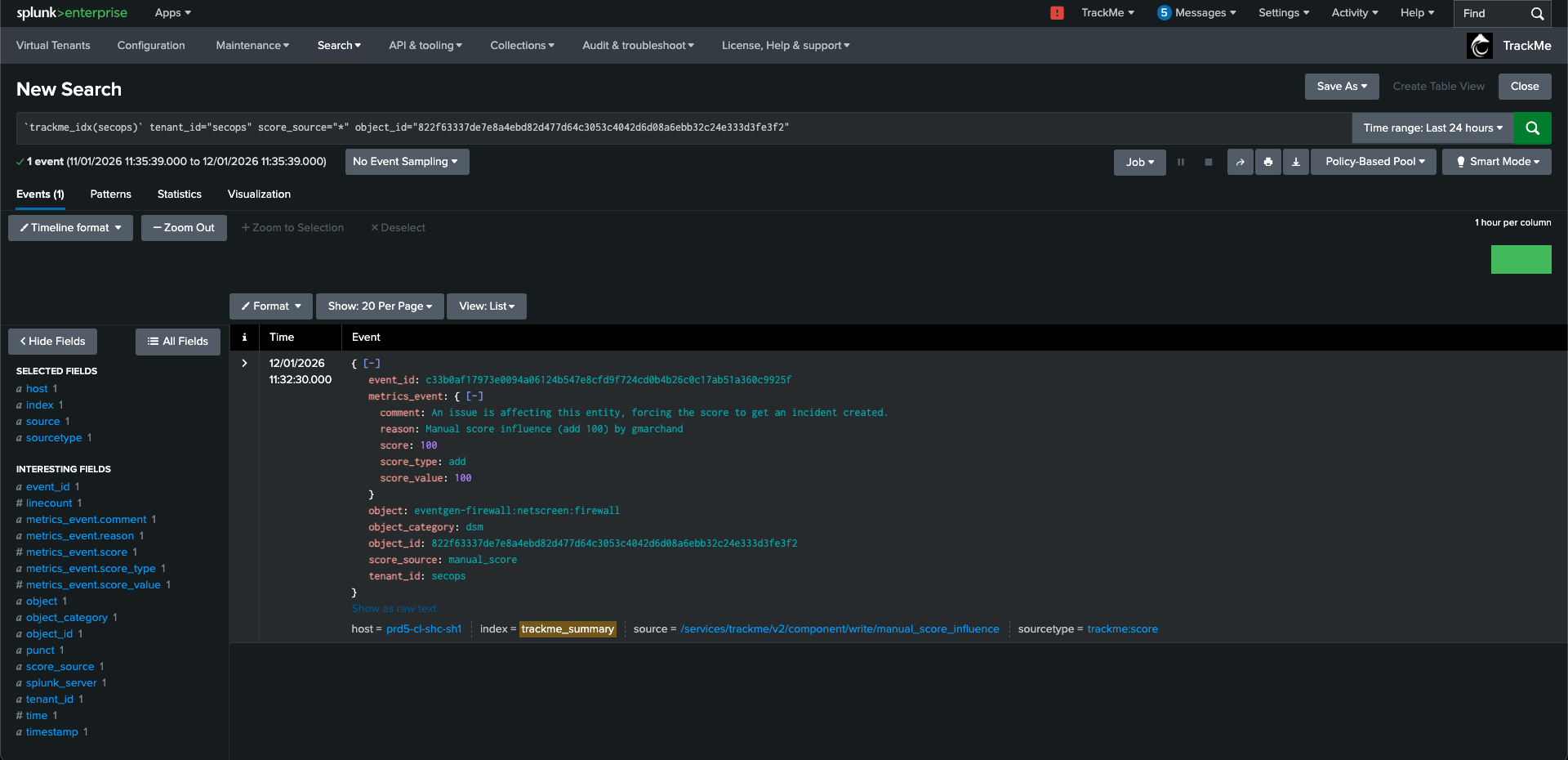 Score Events Link: “See score events” link that opens a Splunk search showing all score events for the entity in the last 24 hours
